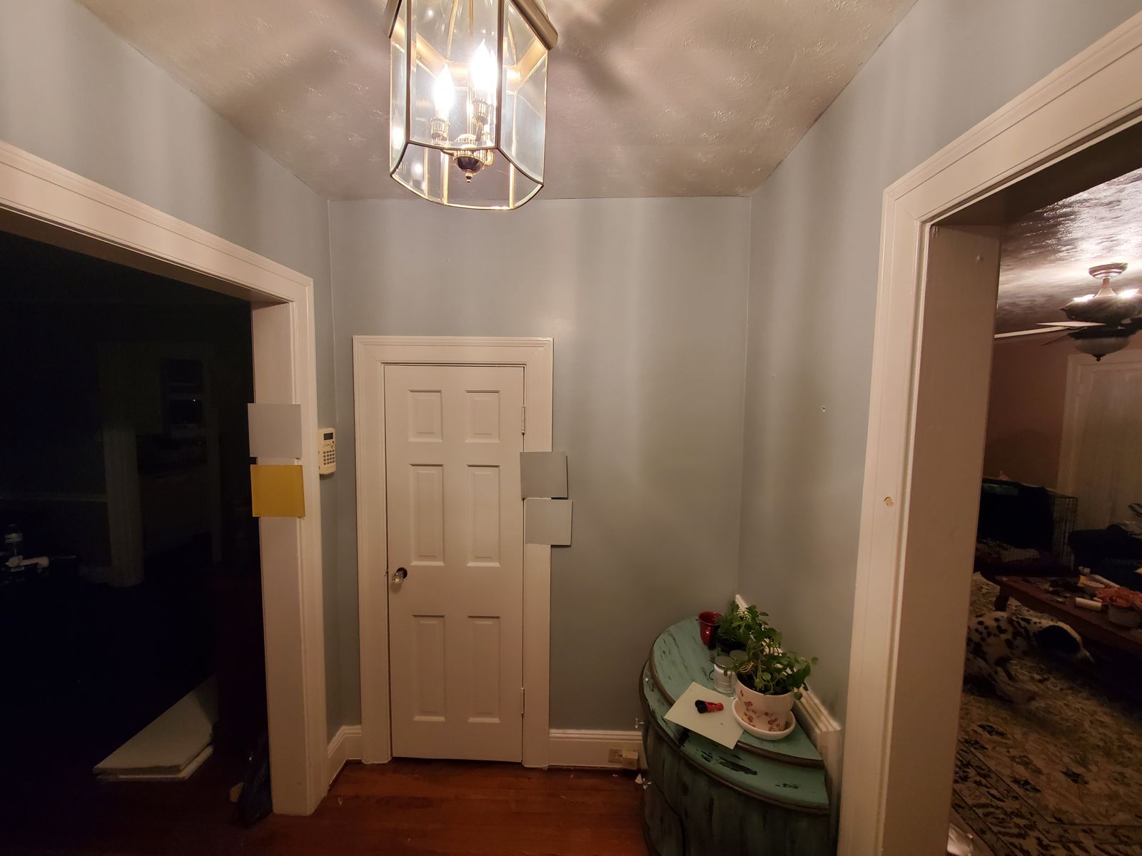 I was looking for a grey for my entryway, upper and downstairs hallways. I pretty much ordered all of the grey swatches Clare has. I was looking for a medium toned grey that would brighten up my walls. I went with Motor City. It almost has a tinge of blue but it the perfect neutral grey to balance out other colors in my house (Meet Cute, Dirty Martini and Whipped)