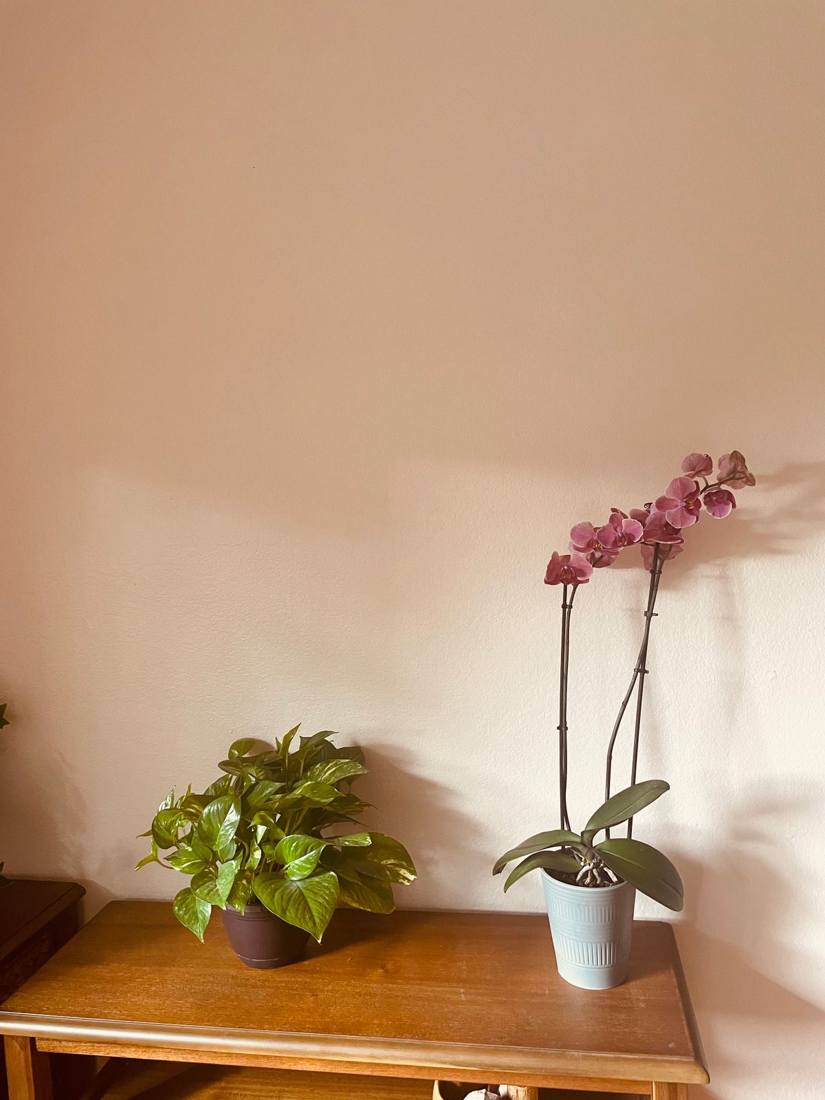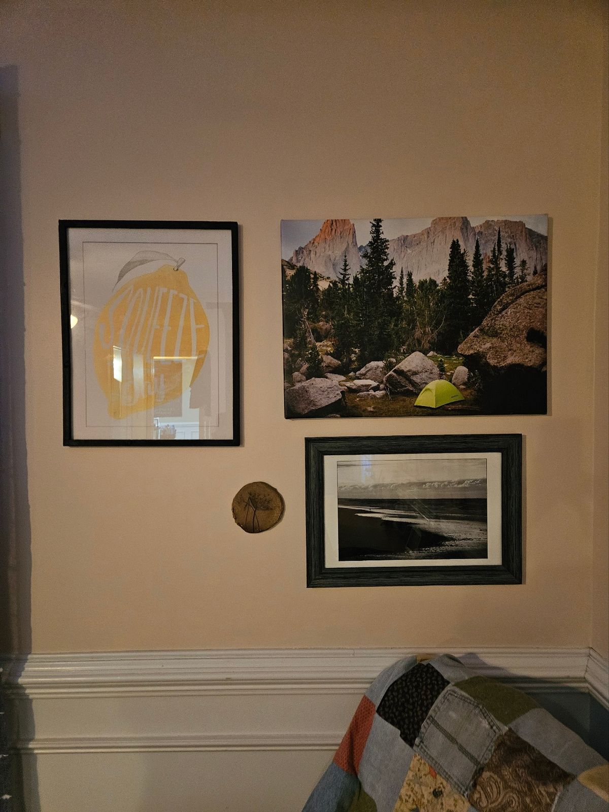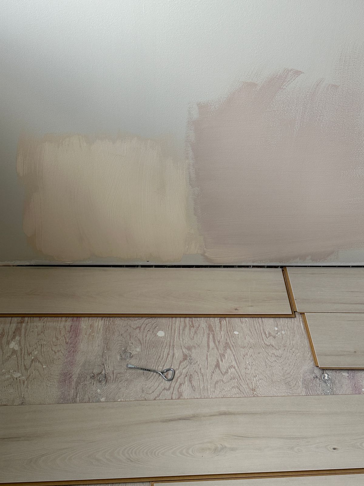 It’s cooler than I expected but I bet it changes color with the lighting a lot. Wing It is the sample color on the right, not completely dry yet so it will tone down. I ended up keeping Classic, the background wall color. The peachy/tan is a sample from Lowe’s. What a difference in the quality of these ain’t brands! Clare is such high quality.